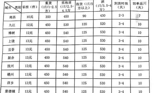 上一篇:成都到新余物流專線價格