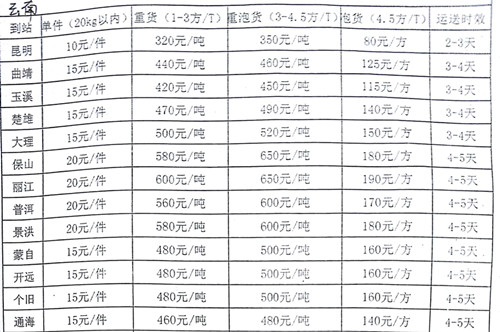 成都到曲靖物流轉線幾天到,運費怎么算?