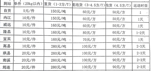 成都到宜賓物流專線運費怎么算?