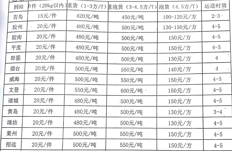 成都到招遠物流專線價格: